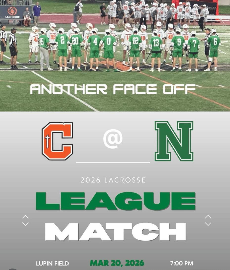 Next up, the Greenies return to Michael Lupin Field for a Friday night matchup at home against Catholic High School. Come out and bring the noise for Newman under the lights! Faceoff is at 7pm.